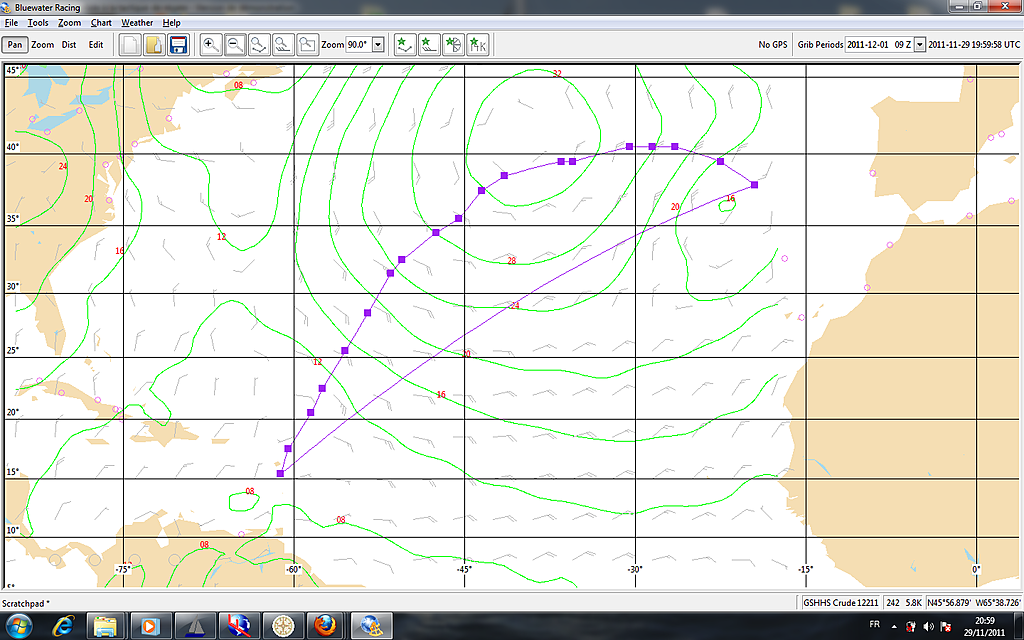 Je trouve intéressant que les logiciels permettent de faire du routage. Pour la grande croisière c'est vraiment top. Surtout que maintenant les gribs en atlantique sont plutôt très fiable a 3 jours.