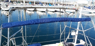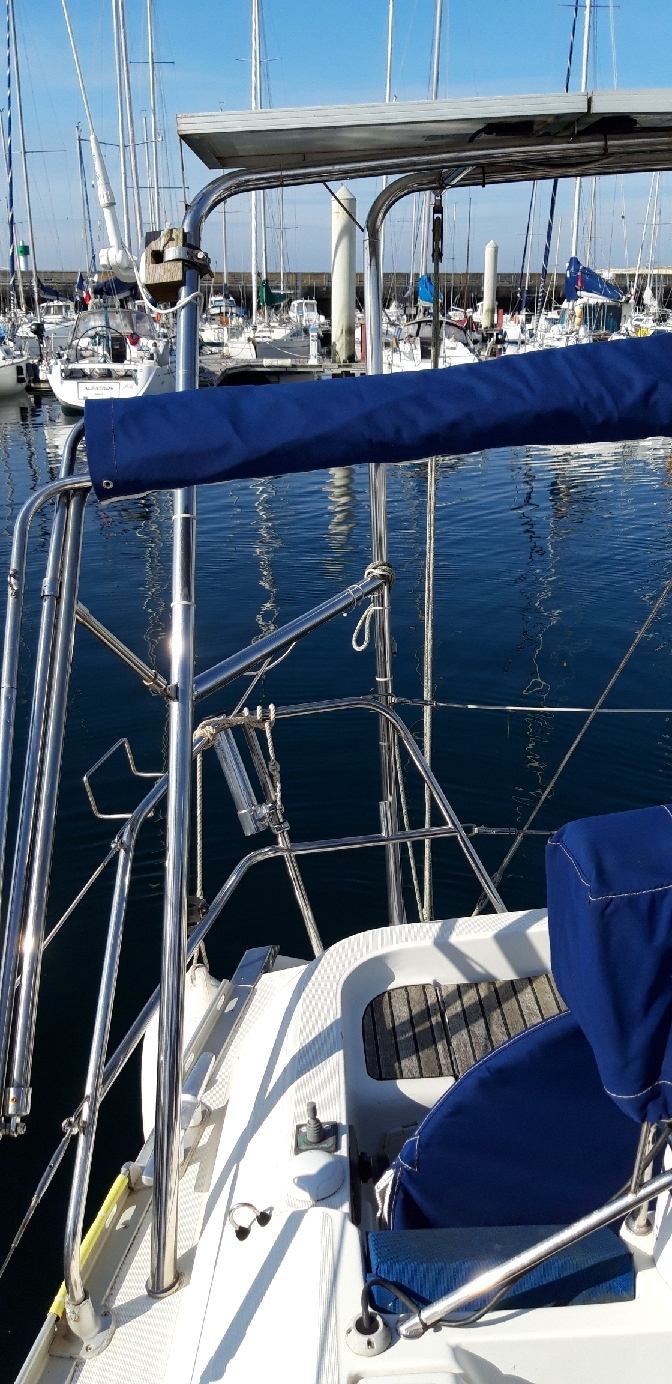 Voici des photos du portique sur SO 45.2. Il y a également un bimini au premier plan.