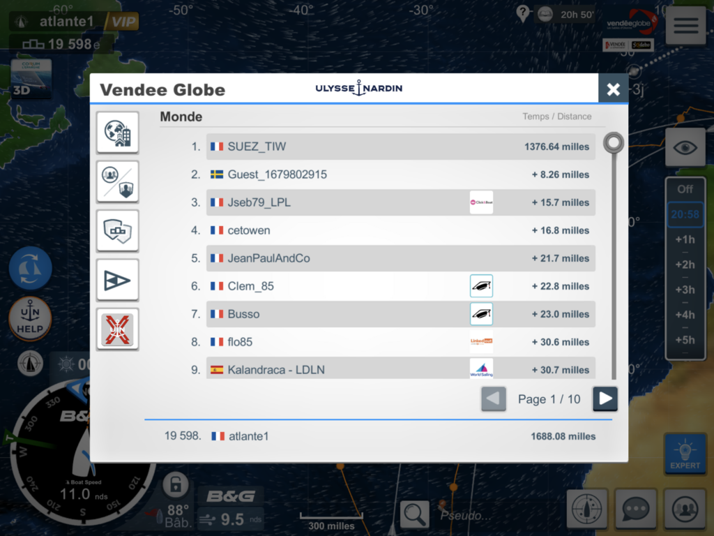 Bonjour Entre-cotes. Oui j'arrive péniblement. Je me suis fais décrocher au cap horn pendant les fêtes de Noël alors que j'étais à une demi heure des premiers dans le sud. Ensuite je n'étais vraiment pas disponible (boulot) et aussi moins motivé. Après une remontée de l'atlantique sud, je me suis retrouvé assez est et j'ai du coup tenté un coup à l'est des Açores. Espérant une ouverture peu probable le long des côtes portugaise. Bon il me reste des captures d'écran à la 150 ème place :). C'était chouette, mais il faut vraiment être très assidu pour espérer une place honorable. Bravo à tous