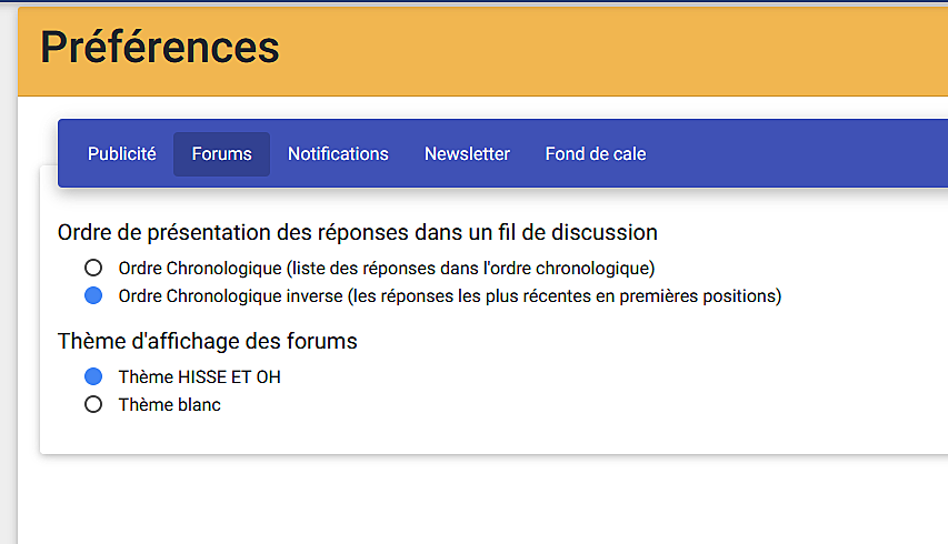 - l'ordre de présentation des posts, chronologique ou chronologique inverse